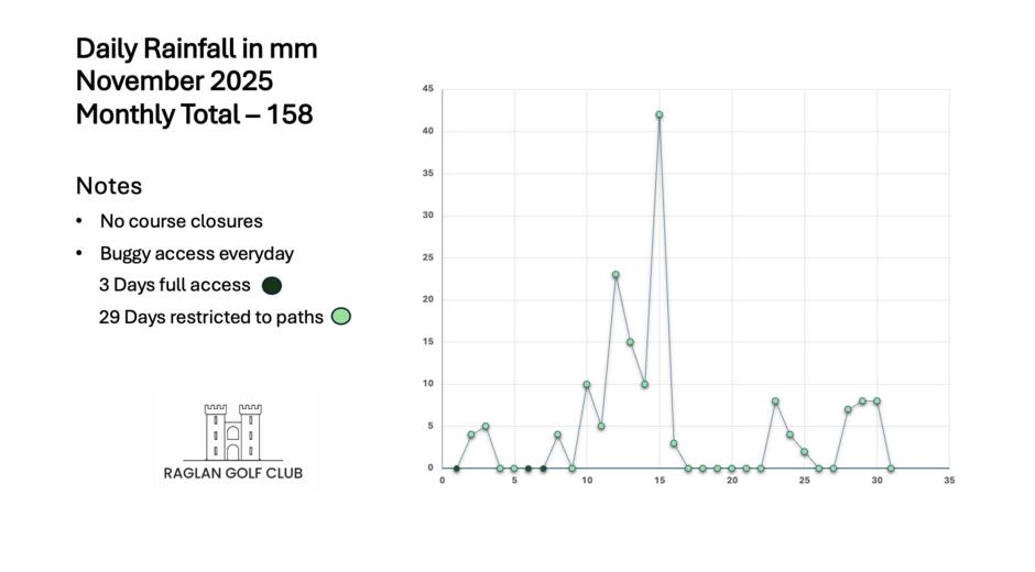 At Raglan Golf Club, we wanted to share some perspective on just how much rain the course has absorbed since the start of November.